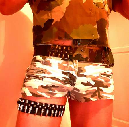 Bonjour je vends une jarretière avec décoration en fausses balles et cartouches .simili cuir noir et élastique à l arrière. Facile à porter et donne un look sympa .